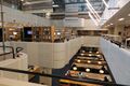 In 1973 the 'Rijksgebouwendienst' (Government Buildings Agency) awarded the contract to the architects A. Hagoort, P.B.M. van der Meer and A.J. Trotz from Bureau OD205 for a new building, construction of which began in 1977. Since 1982, the library has been housed in a modern building at the Prins Willem Alexanderhof in The Hague, next to The Hague Central Station. The entire complex comprises approx. 55,000 m2 net and approx. 78,000 m2 gross surface (gross content 305,000 m³). The building, which is characterized by 5,200 white aluminum plates that clad the facades, with rounded corners and recessed facade surfaces, stands next to the Nationaal Archief. The building also houses the 'Literatuurmuseum' (Literary Museum), the Kinderboekenmuseum (Children's Book Museum), RKD and the offices of Europeana, DEN (Digital Heritage Netherlands) LIBER and IFLA. The CDNL[27] secretariat is also housed in the KB building. The library was previously located in the former city palace Huis Huguetan on the Lange Voorhout (period 1821 to 1982), before that in the Mauritshuis (period 1807 to 1821) and a site at the Binnenhof (period 1798 to 1807).[28]