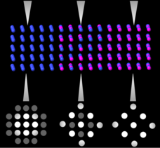These detectors typically have lower pixel densities on the order of 128 x 128 but can achieve much higher dynamic range on the order of 32 bits. These detectors can achieve relatively high readout speeds on the order of 1 ms/pixel but are still lacking compared to their annular detector counterparts in STEM which can achieve readout speeds on the order of 10 μs/pixel.[5][11][6]