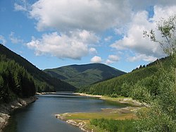 The fluvial system of Moravia is very cohesive, as the region border is similar to the watershed of the Morava river, and thus almost the entire area is drained exclusively by a single stream. Morava's far biggest tributaries are Thaya (Dyje) from the right (or west) and Bečva (east). Morava and Thaya meet at the southernmost and lowest (148 m) point of Moravia. Small peripheral parts of Moravia belong to the catchment area of Elbe, Váh and especially Oder (the northeast). The watershed line running along Moravia's border from west to north and east is part of the European Watershed. For centuries, there have been plans to build a waterway across Moravia to join the Danube and Oder river systems, using the natural route through the Moravian Gate.[15][16]