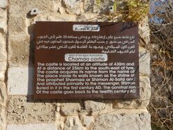 According to E. H. Palmer, Kŭlảt Shemả, means the castle of Shemả; he suggested to link it with the Hebrew given name Shimeon.[5]