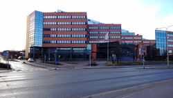 Nokia Corporation (natively Nokia Oyj in Finnish and Nokia Abp in Swedish,[5] referred to as Nokia)[lower-alpha 1] is a Finnish multinational telecommunications, information technology, and consumer electronics corporation, established in 1865. Nokia's main headquarters are in Espoo, Finland , in the greater Helsinki metropolitan area,[3] but the company's actual roots are in the Tampere region of Pirkanmaa.[6] In 2020, Nokia employed approximately 92,000 people[7] across over 100 countries, did business in more than 130 countries, and reported annual revenues of around €23 billion.[4] Nokia is a public limited company listed on the Helsinki Stock Exchange and New York Stock Exchange.[8] It was the world's 415th-largest company measured by 2016 revenues, according to the Fortune Global 500, having peaked at 85th place in 2009.[9] It is a component of the Euro Stoxx 50 stock market index.[10][11]