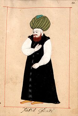 However in Sunni Islam as practiced in the Ottoman and Mughal Empire, a person descending from Muhammad (either maternally or paternally) can only claim the title of Sayyid meritocratically by passing audits, whereupon exclusive rights, like paying lesser taxes, will be granted. These are mostly based on the claimant's demonstrated knowledge of the Quran and piousness (Arabic: Taqwa) under the assessment of a Naqib al-Ashraf, also known as a Mir in Persian-speaking countries.[15][16][17] Notable examples of such a Naqib (plural: "Nuqaba") or Mirs (plural: "Miran"), were Hazrat Ishaan in the Mughal Empire and his descendant Sayyid Mir Fazlullah Agha in Royal Afghanistan.[15]