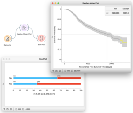 - Survival analysis: add-on for data analysis dealing with survival data. It includes widgets for standard survival analysis techniques, such as the Kaplan-Meier plot, the Cox regression model, and several derivative widgets.
