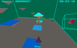 In early 1987, Square released 3-D WorldRunner, designed by Hironobu Sakaguchi and Nasir Gebelli.[75][76] Using a forward-scrolling effect similar to Sega's 1985 third-person rail shooter Space Harrier.[75] 3-D WorldRunner was an early forward-scrolling pseudo-3D third-person platform-action game where players were free to move in any forward-scrolling direction and could leap over obstacles and chasms. It was notable for being one of the first stereoscopic 3-D games.[76] Square released its sequel, JJ, later that year.[77]