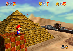 In 1994, a small developer called Exact released a game for the X68000 computer called Geograph Seal, which was a 3D first-person shooter game with platforming. Players piloted a frog-like mech that could jump and then double-jump or triple-jump high into the air as the camera panned down to help players line up their landings. In addition to shooting, jumping on enemies was a primary way to attack.[81] This was the first true 3D platform-action game with free-roaming environments, but it was never ported to another platform or released outside Japan, so it remains relatively unknown in the West.[82]