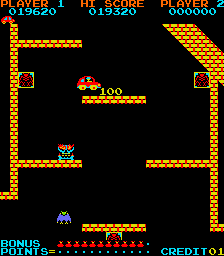 Games in the genre are most commonly called "comical action games" (CAGs) in Japan.[117][118] The original arcade Mario Bros. is generally recognized as the originator of this genre, though Bubble Bobble is also highly influential.[119] These games are characterized by single screen, non-scrolling levels and often contain cooperative two-player action. A level is cleared when all enemies on the screen have been defeated, and vanquished foes usually drop score bonuses in the form of fruit or other items. CAGs are almost exclusively developed in Japan and are either arcade games, or sequels to arcade games, though they are also a common genre among amateur doujinshi games. Other examples include Don Doko Don, Snow Bros. and Nightmare in the Dark.