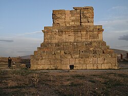 Numidian urban life reflected this same cultural blend. Historian Gabirel Camps stresses that cities such as Cirta, Siga, and Volubilis were not Carthaginian colonies, but authentic centers of Punic culture. They displayed Punic urban planning, sanctuaries, and inscriptions while retaining Berber characteristics. Architecture provides striking examples of this synthesis. The Medracen mausoleum, built in the 4th or 3rd century BC, is a vast royal tomb that combines the Berber form of the stepped tumulus with Punic and Hellenistic features such as Doric columns, Egyptian-style cornices, and cedar ceilings. Other mausolea at Dougga, Maktar, and Khroub illustrate the same mixture. These monuments show that Numidian elites were already deeply Punicized well before Carthage’s destruction, while still maintaining indigenous forms.[69]