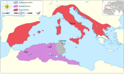 Having been educated in Carthage, Masinissa felt no hostility toward the Carthaginians. Several of his relatives bore Carthaginian names and his brother and uncle had family connections with Hannibal through marriage, and his grandson would later serve as a general there. However, to expand Numidia’s wealth, he sought to enlarge its lands — and the only valuable ones available belonged to Carthage.[25]