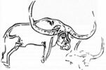 Tracing of paleo-American petroglyphs depicting two Columbian mammoths and an ancient bison.