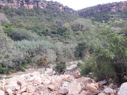 The highlands themselves are divided into three distinct ecoregions, distinguished by elevation. The Ethiopian montane forests lie between 1,100 and 1,800 meters elevation, above the lowland grasslands and savannas, and extends to areas of similar habitat in Eritrea, Sudan, and Djibouti. This woodland belt has several natural plant communities, but has mostly been heavily grazed and converted to agricultural use now. Kolla, is an open woodland found at lower elevations, and dominated by species of Terminalia, Commiphora, Boswellia, and Acacia. Weyna dega is a woodland found in moister and higher locations, dominated by the conifers Afrocarpus gracilior and Juniperus procera. The lower portion of the Harenna Forest is a distinct woodland community, with an open canopy of Warburgia ugandensis, Croton macrostachyus, and Syzygium guineense, and Afrocarpus gracilior, with wild coffee (Coffea arabica) as the dominant understory shrub. The southwesterly winds bring rainfall from May to October with moisture from the Red Sea coming in from the east year round. Fauna at these elevations includes the endemic Harwood's spurfowl (Pternistis harwoodi), Prince Ruspoli's turaco (Tauraco ruspolii) and yellow-throated seedeater (Serinus flavigula)[11]