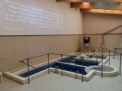 Mikveh or mikvah (Hebrew: מִקְוֶה / מקווה, Modern: mīqve, Tiberian: mīqwe, pl. mikva'ot, mikvoth, mikvot, or (Yiddish) mikves,[1][2] lit., "a collection") is a bath used for the purpose of ritual immersion in Judaism[3] to achieve ritual purity.
