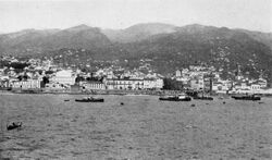 A ferry runs in two hours between Funchal and Porto Santo Island, called the Lobo Marinho.[21] Funchal is frequently used as a stop-over by transatlantic ships, en route from Europe to the Caribbean, as it is the northernmost Atlantic island that lies in the path of the Westerlies.