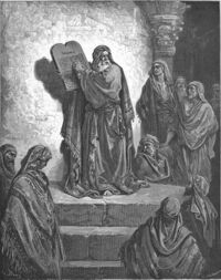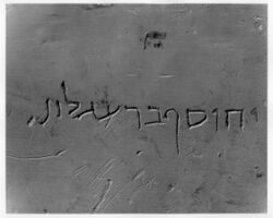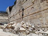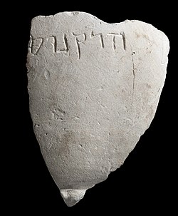 According to Jewish Law (Mishnah, Bava Batra tractate), due to the sanctity of Jerusalem and the impurity of the dead, burial was only allowed beyond the city's walls and fifty cubits away.[137] When the city expanded, the cemeteries were removed (except for the graves of the House of David and Huldah).[138] It has been suggested that the Uzziah Tablet, which says "Hither were brought the bones of Uzziah, king of Judah. Not to be opened", might indicate that king Uzziah's tomb was relocated beyond the city's walls during this period.[139] Jericho's cemetery was also located outside the town's limits.[133]