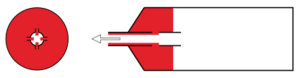 Marraffino's design, which remains in use for single-color stripes, is simple. The main material, usually white, sits at the crimp end of the toothpaste tube and makes up most of its bulk. A thin pipe, through which that carrier material will flow, descends from the nozzle to it. The stripe-material (this was red in Stripe) fills the gap between the carrier material and the top of the tube. The two materials are not in separate compartments, but they are sufficiently viscous that they will not mix. When pressure is applied to the toothpaste tube, the main material squeezes down the thin pipe to the nozzle. Simultaneously, the pressure applied to the main material causes pressure to be forwarded to the stripe material, which thereby issues out through small holes (in the side of the pipe) onto the main carrier material as it is passing those holes.
