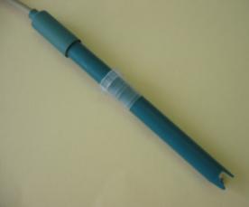 The most practical sensor for measuring temperature change in titrating solutions has been found to be the thermistor. Thermistors are small solid state devices which exhibit relatively large changes in electrical resistance for small changes in temperature. They are manufactured from sintered mixed metal oxides, with lead wires enabling connection to electrical circuitry. The thermistor is encapsulated in a suitable electrically insulating medium with satisfactory heat transfer characteristics and acceptable chemical resistance. Typically for thermistors used for chemical analysis the encapsulating medium is glass, although thermistors encapsulated in epoxy resin may be used in circumstances where either chemical attack (e.g., by acidic fluoride-containing solutions) or severe mechanical stress is anticipated. The thermistor is supported by suitable electronic circuitry to maximize sensitivity to minute changes in solution temperature. The circuitry in the Metrohm 859 Titrotherm thermometric titration interface module is capable of resolving temperature changes as low as 10−5 K.