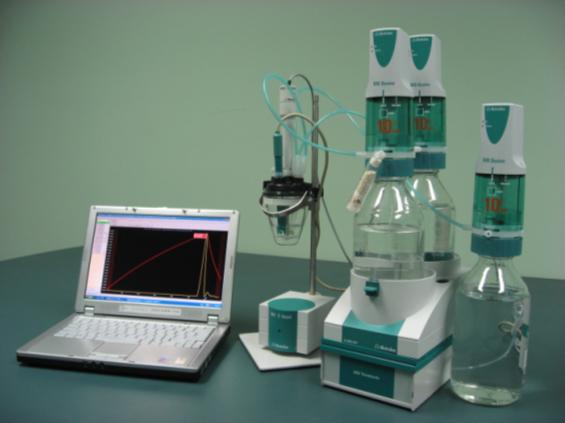 A suitable setup for automated thermometric titrimetry comprises the following: