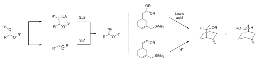 (Left) Lewis acid-promoted acetal substitution may proceed via either the S