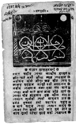 Bengali acquired prominence, over Persian, in the court of the Sultans of Bengal with the ascent of Jalaluddin Muhammad Shah.[34] Subsequent Muslim rulers actively promoted the literary development of Bengali,[35] allowing it to become the most spoken vernacular language in the Sultanate.[36] Bengali adopted many words from Arabic and Persian, which was a manifestation of Islamic culture on the language. Major texts of Middle Bengali (1400–1800) include Yusuf-Zulekha by Shah Muhammad Sagir and Srikrishna Kirtana by the Chandidas poets. Court support for Bengali culture and language waned when the Mughal Empire conquered Bengal in the late 16th and early 17th century.[37]