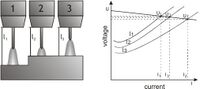 Stable working points in arc welding are developing as interface between process characteristic and power source characteristic (Figure 7). The process characteristic specifies the connection between a stable arc voltage and the appropriate current rating of the process under constant boundary conditions. A family of characteristics is achieved via the variation of the arc length / torch distance.