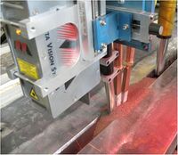 What all optical measuring methods have in common is that the determined groove points must be transformed from the sensor coordinates of the cameras into machine and/or work piece coordinates. To this end, they must be calibrated on test work pieces before the welding process takes place and calibration matrices must be provided. Moreover, for the application of image processing algorithms, information about the groove profile must also be provided in advance. This is carried out via teaching of templates, input of geometrical parameters or teach-in via test work pieces. A more comprehensive image processing for 2 and 3 D sensor systems requires normally a PC system for the evaluation; this is why commercially available PC interfaces are used for data exchange, uniform sensor interfaces do, however, not yet exist.