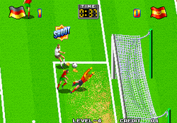 Arcade version screenshot showcasing a match between Germany and Spain.