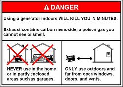 Every year, incorrectly used portable generators result in deaths from carbon monoxide poisoning.[7][8] A 5.5 kW portable generator will generate the same amount of carbon monoxide as six cars, which can quickly build up to fatal levels if the generator has been placed indoors.[9][10] Using portable generators in garages, or near open windows or air conditioning vents can also result in carbon monoxide poisoning.[11]