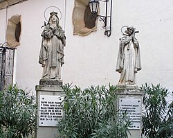 He was born Juan de Yepes y Álvarez at Fontiveros, Old Castile, into a converso family (descendants of Jewish converts to Catholicism) in Fontiveros, near Ávila, a town of around 2,000 people.[5][6][7] His father, Gonzalo, was an accountant to richer relatives who were silk merchants. In 1529 Gonzalo married John's mother, Catalina, who was an orphan of a lower class; he was rejected by his family and forced to work with his wife as a weaver.[8] John's father died in 1545, while John was still only around three years old.[9] Two years later, John's older brother, Luis, died, probably as a result of malnourishment due to the poverty to which the family had been reduced. As a result, John's mother Catalina took John and his surviving brother Francisco, first to Arévalo, in 1548 and then in 1551 to Medina del Campo, where she was able to find work.[10][11]