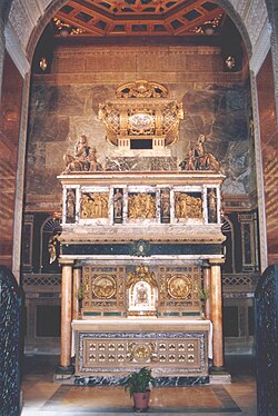 The head and torso were retained by the monastery at Segovia. They were venerated until 1647, when on orders from Rome designed to prevent the veneration of remains without official approval, the remains were buried in the ground. In the 1930s they were disinterred, and are now sited in a side chapel in a marble case above a special altar.[35]