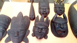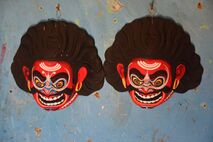 Mask or Mukhosh of West Bengal, as it known has a mysterious history. Mostly it uses for the Mask Dance, the folk dance of West Bengal. The wearing of these masks is connected with early types of folklore and religion. There is various type of masks made up of clay, wood, sponge wood or shola, pith, paper, metal etc. Generally, half masks are made up of clay, pith and paper and wooden masks are very rare. Some of the masks came from the Tribal of West Bengal. Geographically, West Bengal comes well within this mask using culture zone. Mask in West Bengal is mostly used in folk dance.[1][2] UNESCO selected The Rural Craft Hub of Bengal to showcase their artwork in Paris in 2015.[3]