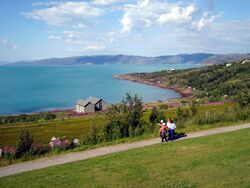 Gjesvær in Nordkapp is mentioned in the Sagas (Heimskringla) as a northern harbor in the Viking Age, especially used by Vikings on the way to Bjarmaland (see Ottar from Hålogaland), and probably also for gathering food in the nearby seabird colony. Coastal areas of Finnmark were colonized by Norwegians beginning in the 10th century, and there are stories describing clashes with the Karelians. Border skirmishes between the Norwegians and Novgorodians continued until 1326, when the Treaty of Novgorod settled the issue.