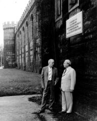 Other witnesses that day agreed with Libby's crediting "scram" to Wilson. Tom Wellock, the U.S. Nuclear Regulatory Commission's historian, wrote that Warren Nyer, a student who worked on assembling the pile, also attributed the word to Wilson: "The word arose in a discussion Dr. Wilson, who was head of the instrumentation and controls group, was having with several members of his group," Nyer wrote. "The group had decided to have a big button to push to drive in both the control rods and the safety rod. What to label it? 'What do we do after we punch the button?,' someone asked. 'Scram out of here!,' Wilson said. Bill Overbeck, another member of that group said, 'OK I'll label it SCRAM.'"[4]