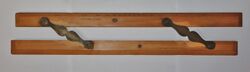 In the 19th century a retired sea captain, Captain William Andrew Field[Note 1] improved the design by adding a protractor-style scale to the upper edge of one rule, and compass points to the opposing edge, which made reading bearings easier.[2] Examples exist of boxwood, ivory or ebony, usually with brass hinges.[2][4] The instrument usually had two links, but longer models sometimes had three,[5] and sometimes the links were scissored.[6] Another variation is the "roller" model which included a cylindrical roller for ease of use.[5]