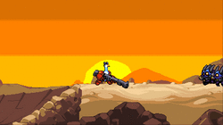 At the start of each level, Mighty Goose is equipped with an arm cannon.[2] Mighty Goose can pick up special weapons such as a machine gun, a shotgun, a rocket launcher, and a tesla coil.[1] These weapons have a limited amount of ammunition.[1] Shooting downwards allows Mighty Goose to hover for a short amount of time.[4] Special attacks can be unlocked, such as summoning minions, or instantly filling the player's Mighty Meter.[1] The Mighty Meter fills up as Mighty Goose attacks enemies.[3][1] When the Mighty Meter is full, it can be activated, making Mighty Goose deal more damage and become invincible.[3] Some areas may task the player with activating a switch to open a door.[1] Mighty Goose can perform a dodge roll that allows them to avoid damage.[6] Most levels end with a boss fight.[1] The player can revisit stages to improve performance and earn higher rankings.[1]