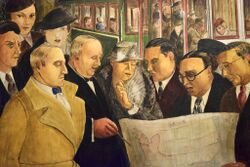 Because of the swiftness with which the New Deal sprang into action and the huge scale and scope of its efforts, a great many of its accomplishments went unrecorded. Although the New Deal public works agencies built tens of thousands of public buildings—post offices, airports, hospitals, museums, colleges, universities, and government buildings—most of what was created remains unmarked. Moreover, in the post-war years, a concerted effort by the New Deal's critics to erase its memory destroyed many identifying markers on New Deal-era buildings and removed public artwork commissioned by the FAP and Treasury Department.[32] In recent years, supporters of the New Deal have actively campaigned to place new signage on buildings to report their New Deal origins. The Living New Deal's New York City chapter worked for several years with the NYC Parks Department and succeeded in getting new signage on New Deal-funded pools. [33]