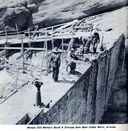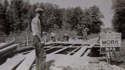 In less than ten years, the New Deal public works programs built and expanded a modern infrastructure that Americans still depend on, but that few are aware of. Every day people use roads, schools, auditoriums, parks, sewers, tunnels, sidewalks, forests, trails, and more without realizing these are the result of an all-out-effort by the Federal government, in alliance with state and local governments, to put people to work during hard times. Some historians have argued that these public works were the foundation for the health and prosperity of the nation for generations afterward.[31]