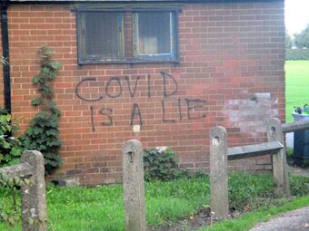 "COVID is a lie" graffiti in Pontefract, West Yorkshire, England