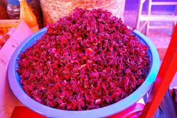 Jamaica iced tea is a popular herbal tea made of the flowers and leaves of the Jamaican hibiscus plant (Hibiscus sabdariffa), known as flor de Jamaica in Mexico. It is served cold and quite sweet with a lot of ice. The ruby-red beverage called hibiscus tea in English-speaking countries is called agua de Jamaica (water of Jamaica) in Mexico, where it is widely available in restaurants and from street vendors.[7]