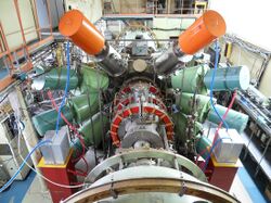Despite its name, the centre was not involved either with military atomic science or nuclear reactors— instead, its concentration was on high-energy physics (particularly plasma physics) and particle physics. In 1961 the institute began building VEP-1,[1][2] the first particle accelerator in the Soviet Union which collided two beams of particles, just a few months after the ADA collider became operational at the Frascati National Laboratories in Italy in February 1961.[3] The BINP employs over 3000 people, and hosts research groups and facilities.
