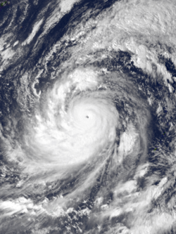 In the tropical western Pacific, the monsoon and the related wet season during the summer months contrast with dry winds in the winter which blow over the ocean from the Asian landmass.[75] Worldwide, tropical cyclone activity peaks in late summer, when the difference between temperatures aloft and sea surface temperatures is the greatest; however, each particular basin has its own seasonal patterns. On a worldwide scale, May is the least active month, while September is the most active month. November is the only month in which all the tropical cyclone basins are active.[76] The Pacific hosts the two most active tropical cyclone basins, which are the northwestern Pacific and the eastern Pacific. Pacific hurricanes form south of Mexico, sometimes striking the western Mexican coast and occasionally the Southwestern United States between June and October, while typhoons forming in the northwestern Pacific moving into southeast and east Asia from May to December. Tropical cyclones also form in the South Pacific basin, where they occasionally impact island nations.[77]