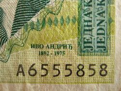 The portraits of Ivan Franjo Jukić and Meša Selimović, which are both writers, were featured by consensus between both entities on all KM 1 and KM 5 notes used between 1998 and 2010.[1]