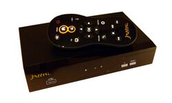 According to the European Audiovisual Observatory, 142 paying VOD services were operational in Europe at the end of 2006. The number increased to 650 by 2009.[30] At the 2010 Consumer Electronics Show in Las Vegas, Nevada, Sezmi CEO Buno Pati and president Phil Wiser showed a set-top box with a one-terabyte hard drive that could be used for video-on-demand services previously offered through cable television and broadband. A movie, for example, could be sent out once using a broadcast signal rather than numerous times over cable or fiber-optic lines, and this would not involve the expense of adding many miles of lines. Sezmi planned to lease part of the broadcast spectrum to offer a subscription service that National Association of Broadcasters President Gordon H. Smith said would provide a superior picture to that of cable or satellite at a lower cost.[31]