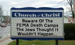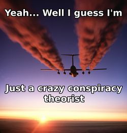 Other examples are "secrets" both immensely well-kept by the most powerful and elite entities, while simultaneously being so obvious as to be easily deduced by random "bozos on the bus" who talk about them openly both on the Internet and in public (somehow without the conspirators disappearing them). Apart from chemtrails, a common example is the highly-organized and thoroughly-secret system of concentration camps operated by FEMA, which happens to come from an agency infamous for its amazingly chaotic, clumsy, and ineffective handling of Katrina. Alternatively, use any other intensely secret program that could be easily discovered and verified by anyone with a common piece of scientific equipment (or Google).