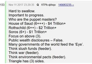 The term 'unified conspiracy theory' is a bit of a misnomer, as it is unified in the same way that a dumpster fire is unified: it's a dumpster, it's full of garbage, and it's inflammatory (in the case of the conspiracy theory, or it's just flaming in the case of the dumpster). Elements of the unified conspiracy theory are often thrown in willy-nilly with, at best, ephemera holding them together.