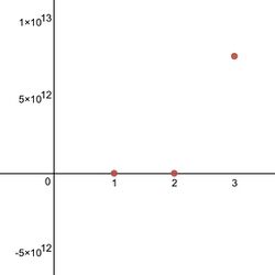 8.072 × 10153 are much too large to appear on the graph.