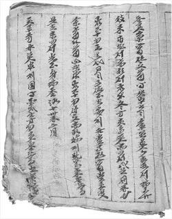 The earliest surviving Mongolian text may be the Stele of Yisüngge (ru), a report on sports composed in Mongolian script on stone, which is most often dated at 1224 or 1225.[10] The Mongolian-Armenian wordlist of 55 words compiled by Kirakos of Gandzak (13th century) is the first written record of Mongolian words.[11] From the 13th to the 15th centuries, Mongolian language texts were written in four scripts (not counting some vocabulary written in Western scripts): Uyghur Mongolian (UM) script (an adaptation of the Uyghur alphabet), 'Phags-pa script (Ph) (used in decrees), Chinese (SM) (The Secret History of the Mongols), and Arabic (AM) (used in dictionaries).[12] While they are the earliest texts available, these texts have come to be called "Middle Mongol" in scholarly practice.[13] The documents in UM script show some distinct linguistic characteristics and are therefore often distinguished by terming their language "Preclassical Mongolian".[14]