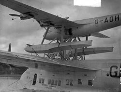 The Short-Mayo composite project, co-designed by Mayo and Shorts chief designer Arthur Gouge,[1][2] comprised the Short S.21 Maia, [note 1] (G-ADHK) which was a variant of the Short "C-Class" Empire flying-boat fitted with a trestle or pylon on the top of the fuselage to support the Short S.20 Mercury(G-ADHJ).[3]