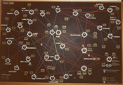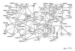 The basic advantages of TRAME[1] over other technologies used in electric utilities at the time were in part due to the packet technology itself: ability to manage any network topology, automatic adaptability to topological and traffic changes, integration of different link technologies (digital or analog) and capacities in a single network, open and decentralized intercommunicability between users and devices, simultaneous communication with several users and locations from a single physical connection, and integrated network supervision. In fact, the network was provided from its inception with a supervision center[24] consisting of a computer and a synoptic board located at the company's headquarters (see Figure II).