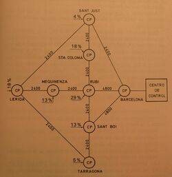 The basic service provided by the TRAME[1] network was SCADA or Telecontrol to automate the high-voltage power grid, thus improving operational efficiency, which was until then operated manually with telephone communication between human operators. Each TRAME router was associated with one or more remote terminal units (RTUs) of the SICL telecontrol system.[11][12] It also had connected screens, and later PCs, located in electrical substations to interchange messages between them and with the Control Center[13] located in the well-known Casa Fuster in Barcelona. It was a kind of predecessor to today's e-mail. Later, in the 1990s, other protocols (X.25, IP) were developed to include corporate information technology (IT) terminals, company physical surveillance systems and other services. Additionally, applications and terminals were developed for the transmission of voice and video over the TRAME network.[14][15]