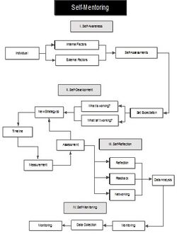 From Handwiki Self-mentoring is a process which requires one to assemble a realistic, accurate assessment of yourself (strengths and weaknesses) with the goal of crafting one's ‘ideal self’ to heighten job performance, career progression, or personal ambitions. This practice is a four-stage framework which includes: self-awareness, self-development, self-reflection, and self-monitoring.