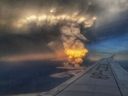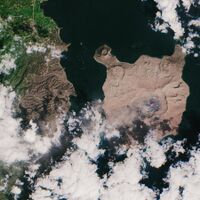 Taal Volcano in Batangas, Philippines began to erupt on January 12, 2020, when a phreatomagmatic eruption from its main crater spewed ashes over Calabarzon, Metro Manila, and some parts of Central Luzon and Ilocos Region, resulting in the suspension of school classes, work schedules, and flights in the area.[4][5] The Philippine Institute of Volcanology and Seismology (PHIVOLCS) subsequently issued an Alert Level 4, indicating "that a hazardous explosive eruption is possible within hours to days."[6][7] Volcanic activity continued into 2021, when smaller eruptions occurred in July 2021.[8]
